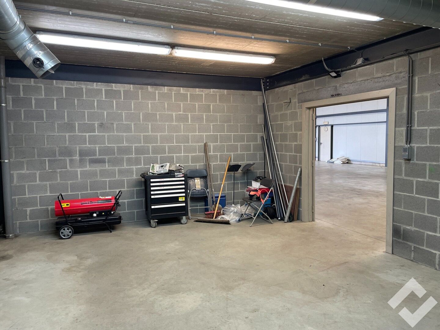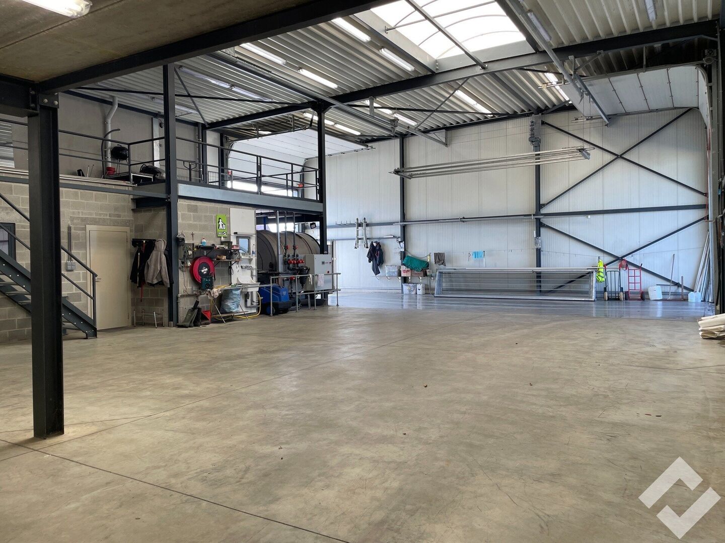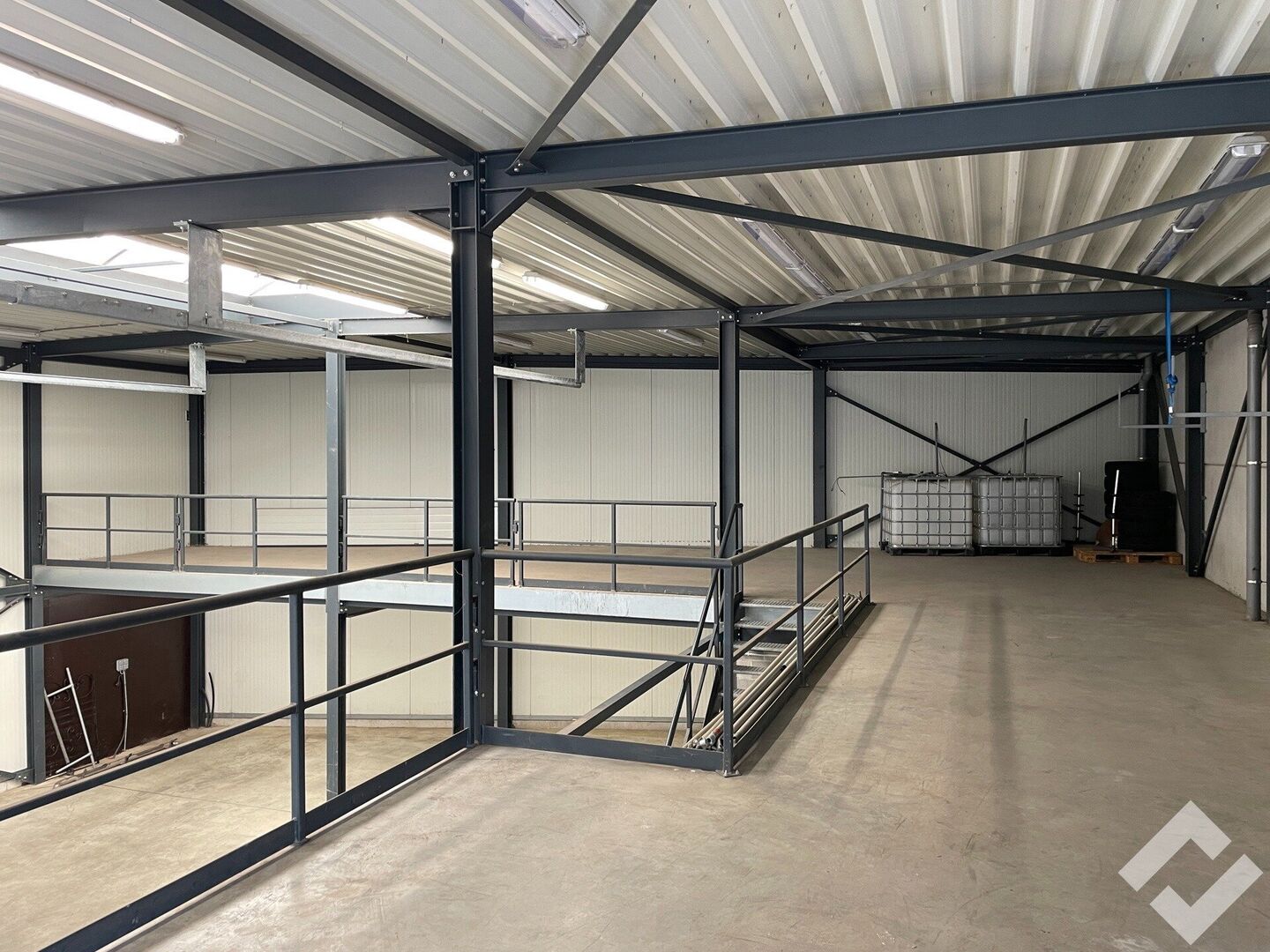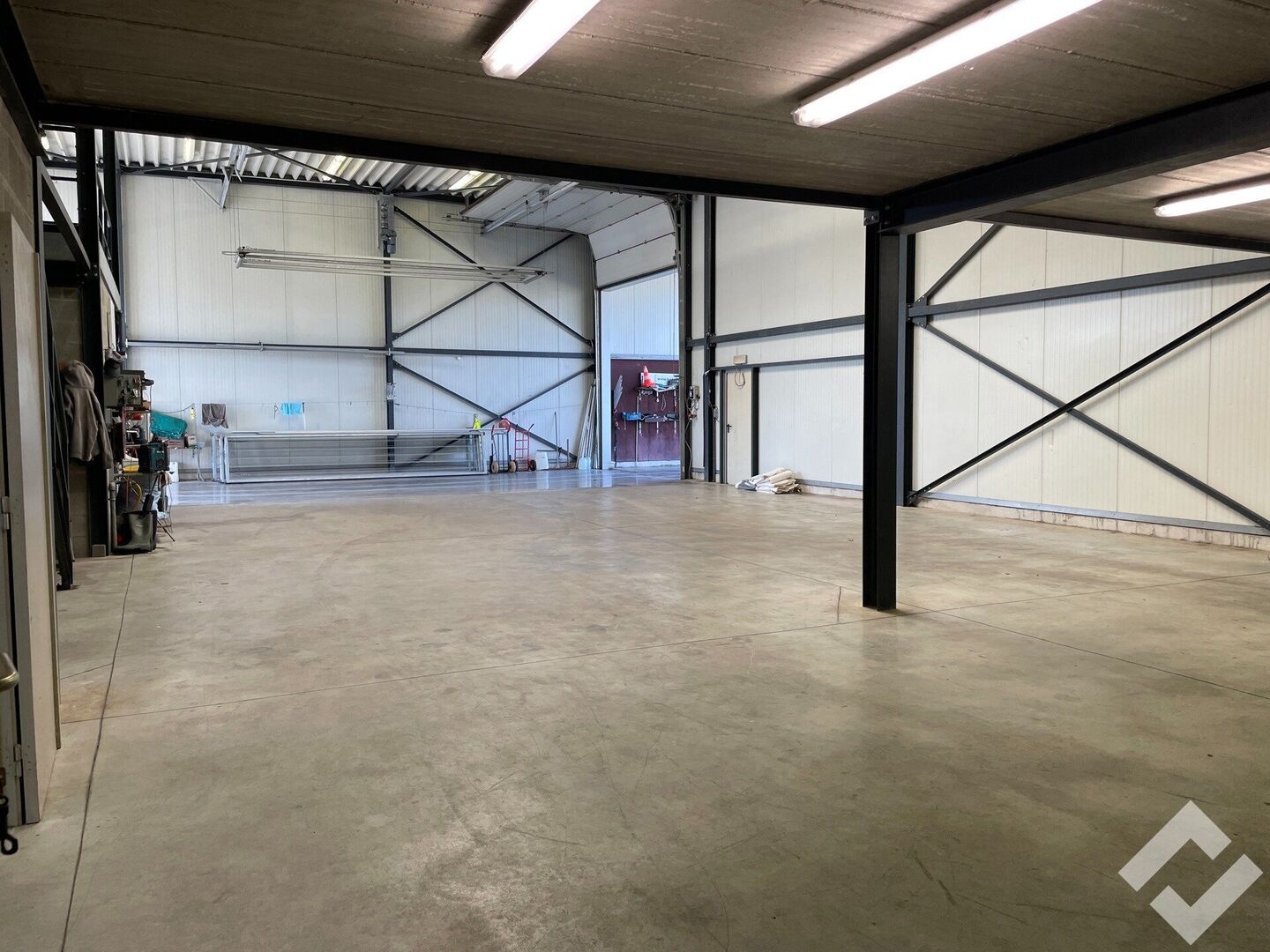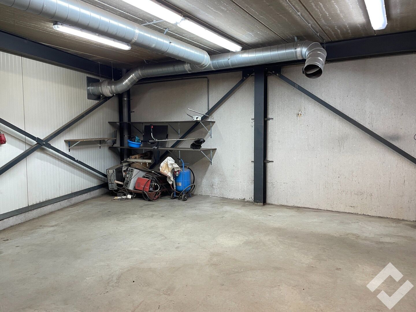 Het gebouw bestaat uit een werk/opslagplaats van 300m2 met een betonnen verdiepingsvloer van 100m2. Deze is opgetrokken in staalconstructie met geïsoleerde panelen beschikt over voldoende stroompunten (220V/380V), verlichting, gepolierde betonvloer met drainage en twee automatische sectionaalpoorten. Onder de verdiepingsvloer is nog een afgesloten werkatelier. Achteraan aan de hal is een luifel van 85m2 voorzien voor buitenopslag van goederen die tevens over verlichting beschikt. Het gebouw staat op een afgesloten perceel van 1.833m2, zo zijn er voldoende parkeerplaatsen en ruimte voor buitenopslag. Het terrein is vooraan en naast de hal voorzien van automatische poorten.