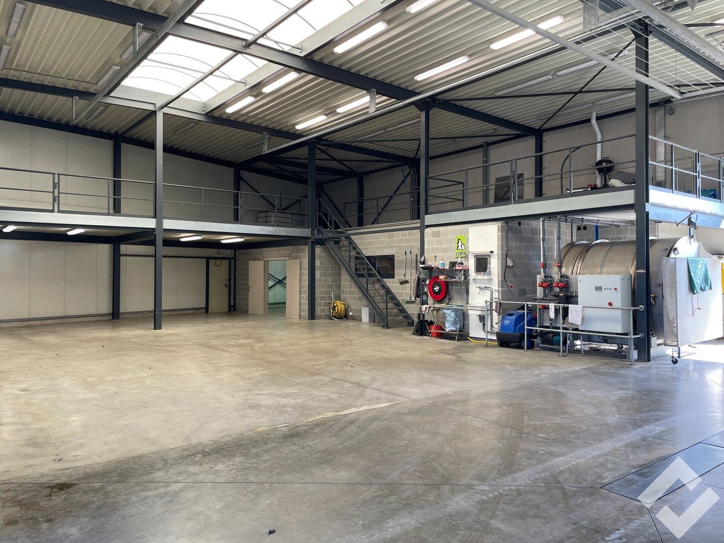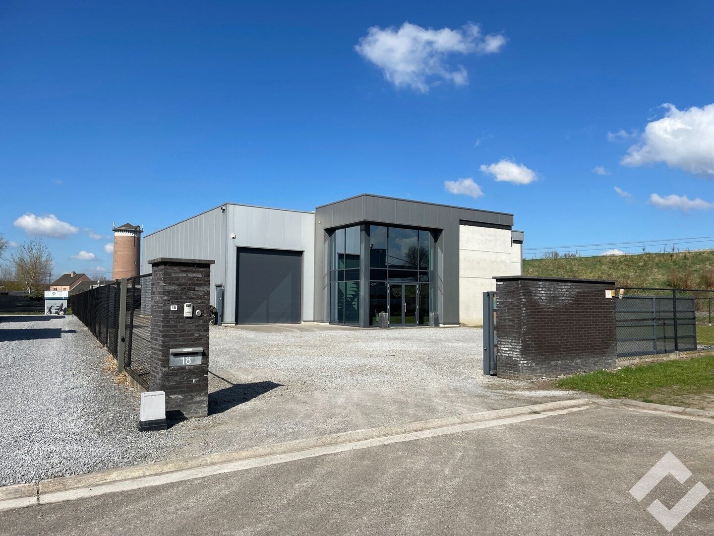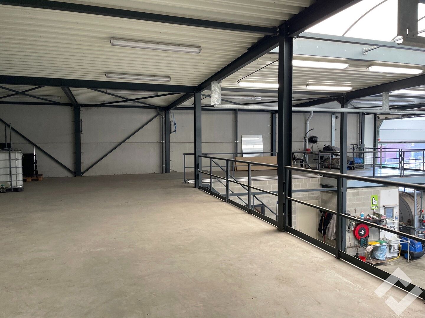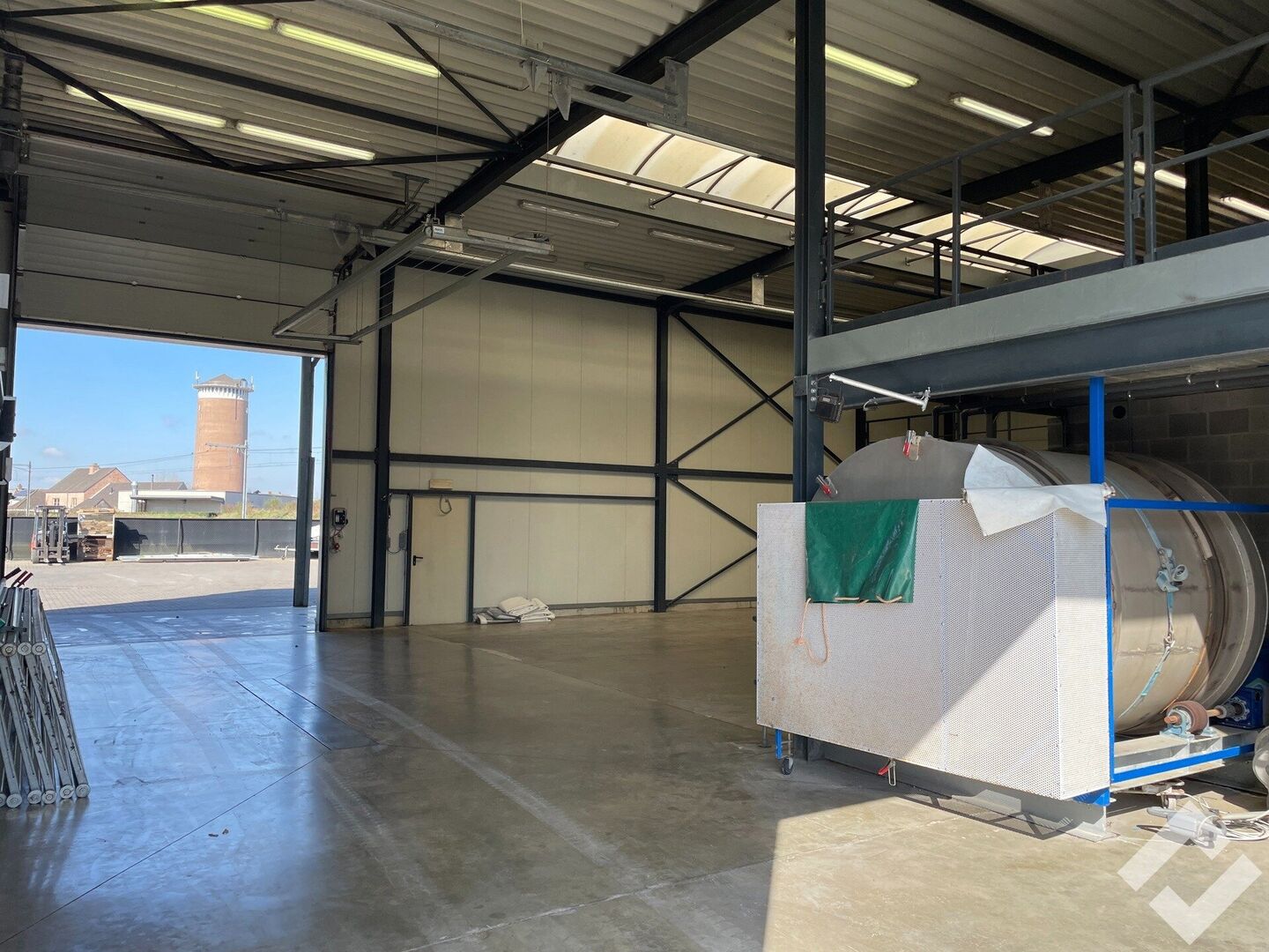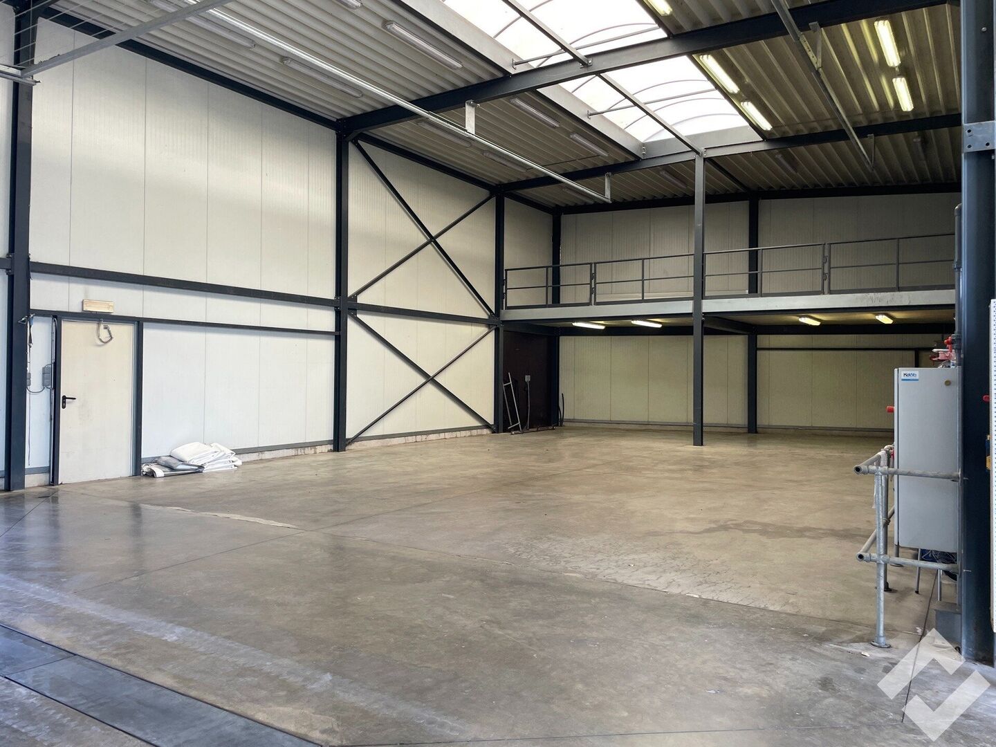 Het gebouw bestaat uit een werk/opslagplaats van 300m2 met een betonnen verdiepingsvloer van 100m2. Deze is opgetrokken in staalconstructie met geïsoleerde panelen beschikt over voldoende stroompunten (220V/380V), verlichting, gepolierde betonvloer met drainage en twee automatische sectionaalpoorten. Onder de verdiepingsvloer is nog een afgesloten werkatelier. Achteraan aan de hal is een luifel van 85m2 voorzien voor buitenopslag van goederen die tevens over verlichting beschikt. Het gebouw staat op een afgesloten perceel van 1.833m2, zo zijn er voldoende parkeerplaatsen en ruimte voor buitenopslag. Het terrein is vooraan en naast de hal voorzien van automatische poorten.