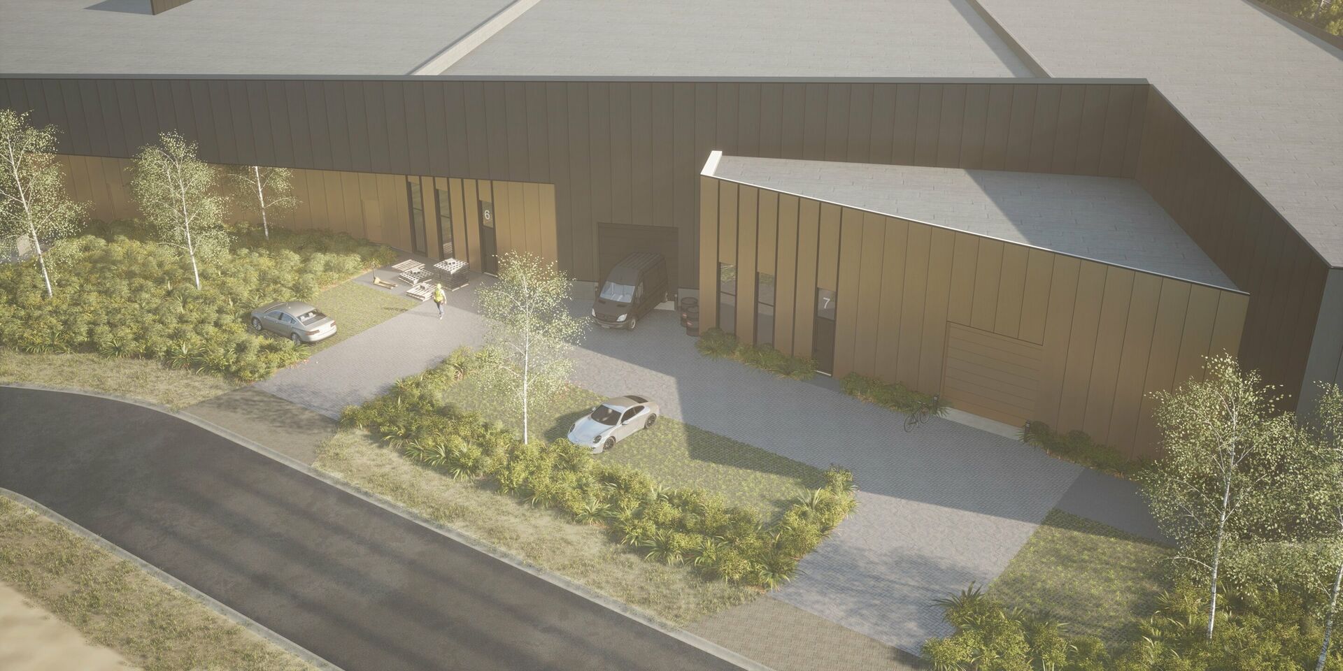 De gebouwen zijn opgetrokken met hoogwaardige en onderhoudsvriendelijke materialen. Elke unit wordt voorzien van nutsleidingen, sectionale poorten, regenwaterrecuperatie en parkeergelegenheid. Met een dakrandhoogte van 8 meter zijn mezzanines of verticale opslag mogelijk. Optioneel kunnen kantoren, loskades en extra afwerkingen zoals verlichting, HVAC en sanitair worden toegevoegd.